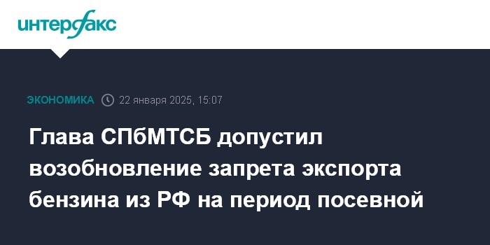 Глава СПбМТСБ допустил возобновление запрета экспорта бензина из РФ на период посевной