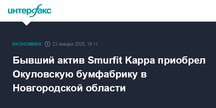 Бывший актив Smurfit Kappа приобрел Окуловскую бумфабрику в Новгородской области