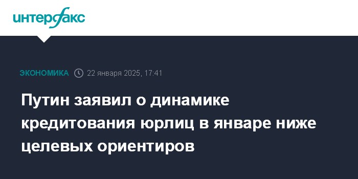 Путин заявил о динамике кредитования юрлиц в январе ниже целевых ориентиров