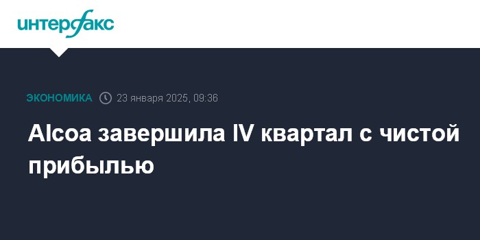 Москва. 23 января. INTERFAX.RU - Американская алюминиевая компания Alcoa завершила четвертый квартал 2024 года с чистой прибылью, при этом ее выручка превзошла ожидания аналитиков.