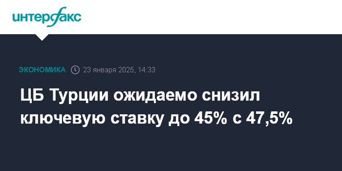 ЦБ Турции ожидаемо снизил ключевую ставку до 45% с 47,5%