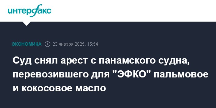 Суд снял арест с панамского судна, перевозившего для "ЭФКО" пальмовое и кокосовое масло