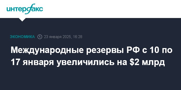 Международные резервы РФ с 10 по 17 января увеличились на $2 млрд