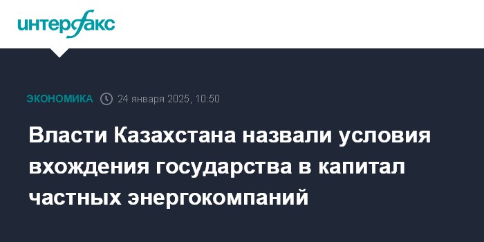 Власти Казахстана назвали условия вхождения государства в капитал частных энергокомпаний