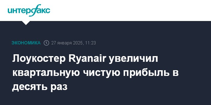 Москва. 27 января. INTERFAX.RU - Ирландская Ryanair Holdings Plc, крупнейшая в Европе бюджетная авиакомпания, нарастила чистую прибыль в третьем квартале 2025 финансового года в десять раз на фоне роста пассажиропотока.
