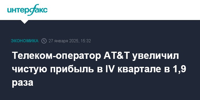 Москва. 27 января. INTERFAX.RU - Американский телекоммуникационный оператор AT&T Inc. увеличил чистую прибыль в четвертом квартале 2024 года в 1,9 раза, выручку - на 1%.