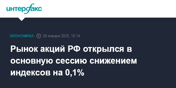 Рынок акций РФ открылся в основную сессию снижением индексов на 0,1%
