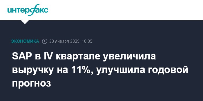 Москва. 28 января. INTERFAX.RU - Германская SAP SE, крупнейший мировой производитель программного обеспечения для управления предприятиями, в четвертом квартале 2024 года увеличила выручку на 11%.