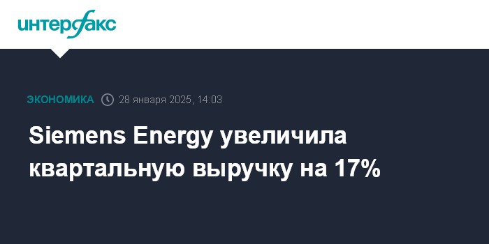 Москва. 28 января. INTERFAX.RU - Германский производитель оборудования для энергетики Siemens Energy AG увеличил выручку в первом квартале 2025 финансового года на 17%, причем показатель превысил ожидания аналитиков.