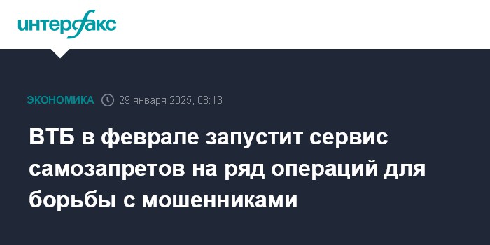 Москва. 29 января. INTERFAX.RU - ВТБ в феврале планирует запустить в мобильном банке сервис самозапретов для борьбы с мошенниками, сообщил журналистам заместитель президента - председателя правления банка Георгий Горшков.