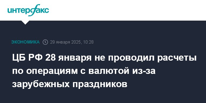 ЦБ РФ 28 января не проводил расчеты по операциям с валютой из-за зарубежных праздников