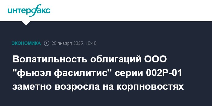 Волатильность облигаций ООО "фьюэл фасилитис" серии 002Р-01 заметно возросла на корпновостях