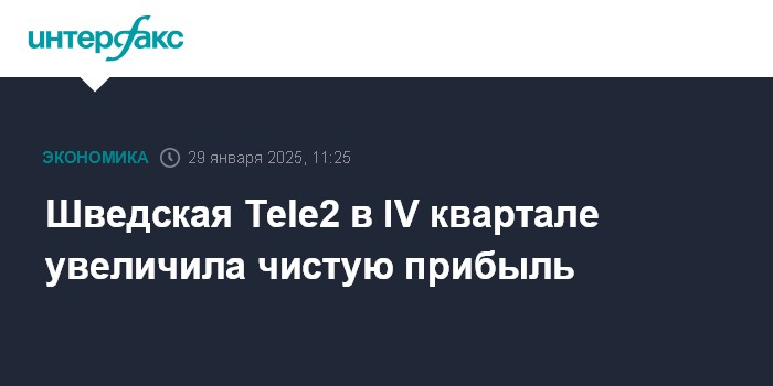Москва. 29 января. INTERFAX.RU - Шведская телекоммуникационная компания Tele2 AB отчиталась о росте чистой прибыли и выручки в IV квартале 2024 года и объявила о начале преобразований для повышения рентабельности.