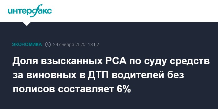 Доля взысканных РСА по суду средств за виновных в ДТП водителей без полисов составляет 6%