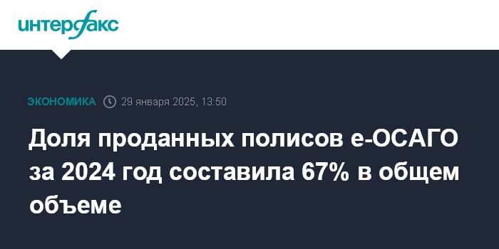 Доля проданных полисов е-ОСАГО за 2024 год составила 67% в общем объеме