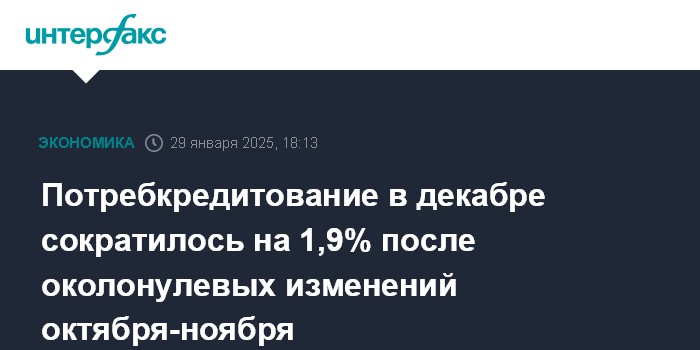 Потребкредитование в декабре сократилось на 1,9% после околонулевых изменений октября-ноября