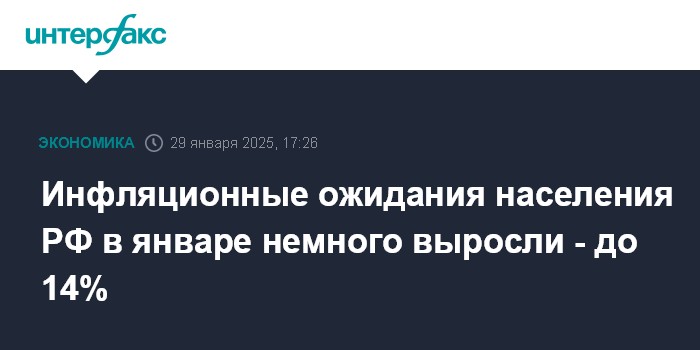 Инфляционные ожидания населения РФ в январе немного выросли - до 14%