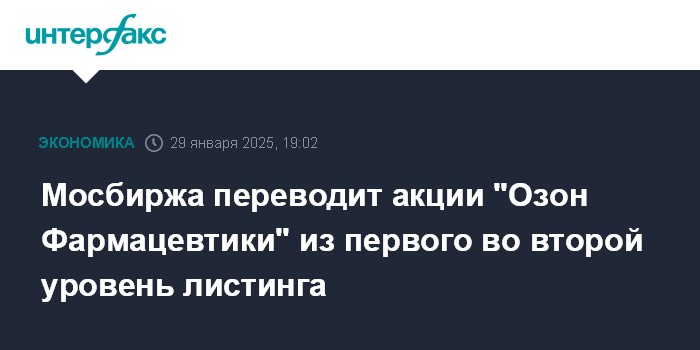 Мосбиржа переводит акции "Озон Фармацевтики" из первого во второй уровень листинга