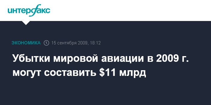 Убытки мировой авиации в 2009 г. могут составить $11 млрд