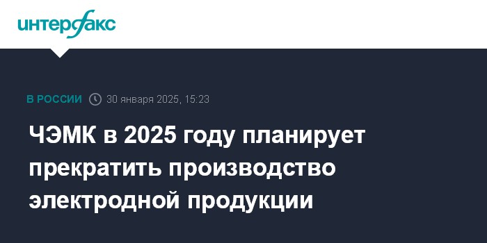 ЧЭМК в 2025 году планирует прекратить производство электродной продукции