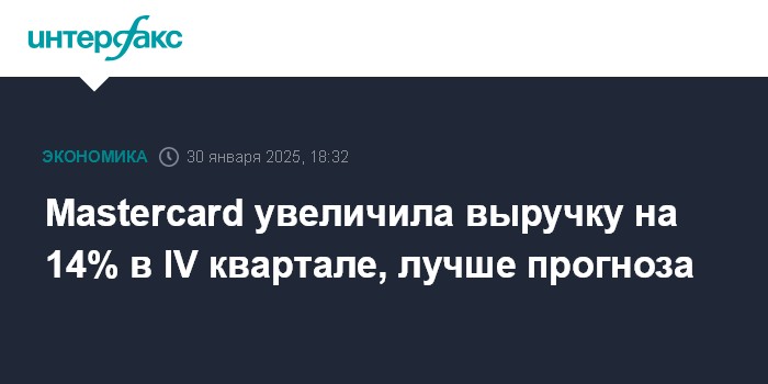 Москва. 30 января. INTERFAX.RU - Американская компания Mastercard Inc., оператор одной из крупнейших в мире платежных систем, увеличила чистую прибыль и выручку в четвертом квартале 2024 года, причем скорректированная прибыль и выручка превысили ожидания рынка.