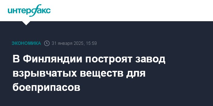 Москва. 31 января. INTERFAX.RU - В Финляндии в городе Пори будет построен завод по производству взрывчатых веществ стоимостью более 200 миллионов евро, сообщил на пресс-конференции министр обороны страны Антти Хаккянен.