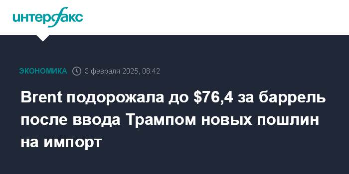 Brent подорожала до $76,4 за баррель после ввода Трампом новых пошлин на импорт