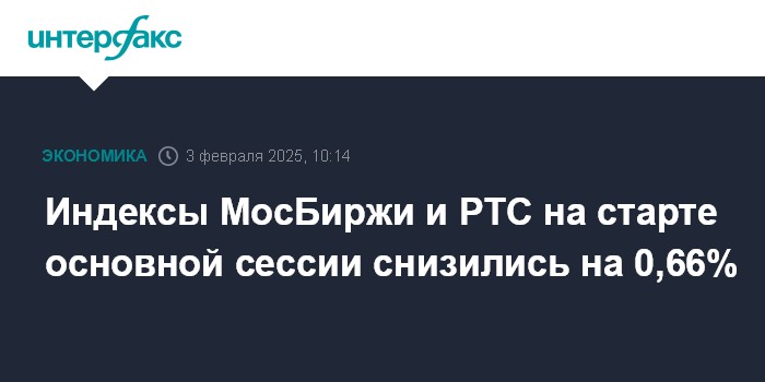Индексы МосБиржи и РТС на старте основной сессии снизились на 0,66%