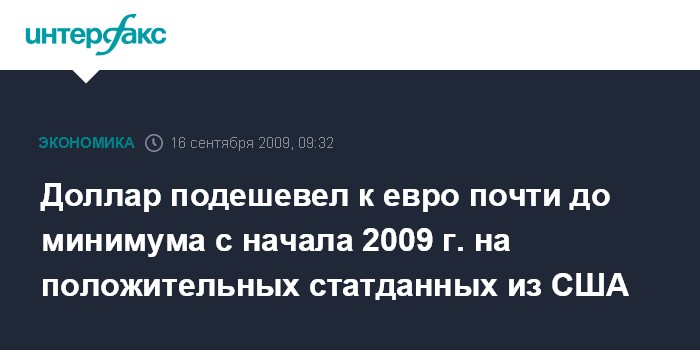 Доллар подешевел к евро почти до минимума с начала 2009 г. на положительных статданных из США