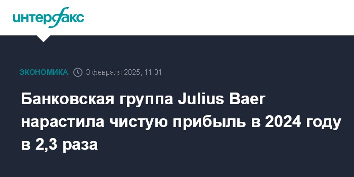 Москва. 3 февраля. INTERFAX.RU - Швейцарская банковская группа Julius Baer значительно нарастила чистую прибыль в 2024 году на фоне рекордного объема активов под управлением.