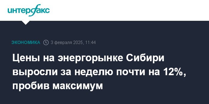 Цены на энергорынке Сибири выросли за неделю почти на 12%, пробив максимум