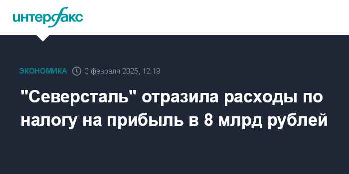 Москва. 3 февраля. INTERFAX.RU - ПАО "Северсталь" отразило расход по налогу на прибыль в связи с повышением его ставки до 25% в сумме 8,097 млрд рублей, говорится в финансовом отчете компании за 2024 год.
