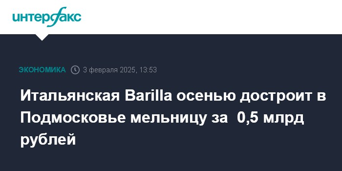 Итальянская Barilla осенью достроит в Подмосковье мельницу за 0,5 млрд рублей