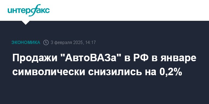 Москва. 3 февраля. INTERFAX.RU - Продажи автомобилей Lada в РФ в январе 2025 года символически снизились на 0,2%, составив 20 802 штуки, сообщила пресс-служба АО "АвтоВАЗ".