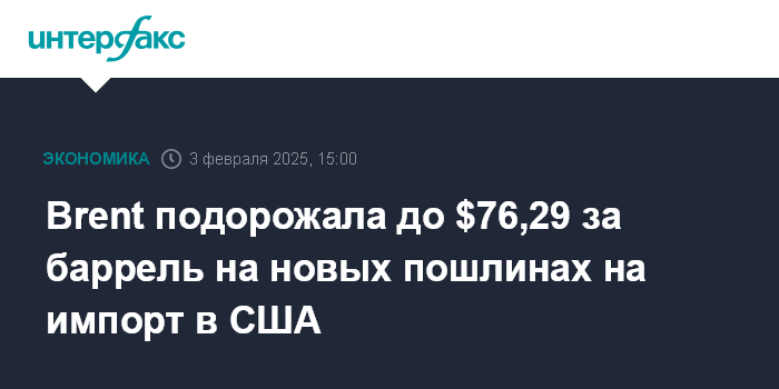 Brent подорожала до $76,29 за баррель на новых пошлинах на импорт в США