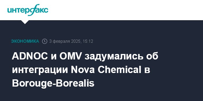 Москва. 3 февраля. INTERFAX.RU - Abu Dhabi National Oil Co. (ADNOC) и австрийская OMV AG рассматривают возможность приобретения у Mubadala Investment Company (суверенный фонд Абу-Даби) компании Nova Chemicals Corporation для последующей интеграции в объединенный нефтехимический холдинг Borouge-Borealis.