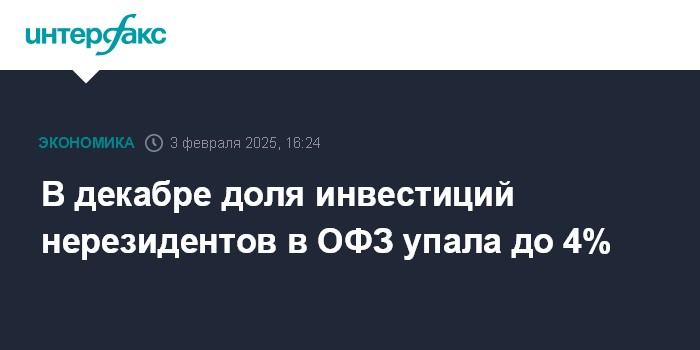 В декабре доля инвестиций нерезидентов в ОФЗ упала до 4%