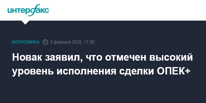 Москва. 3 февраля. INTERFAX.RU - Уровень исполнения сделки ОПЕК+ находится на высоком уровне, практически все ее участники добывали в соответствие со своими обязательствами, сообщил вице-премьер РФ Александр Новак в интервью телеканалу "Россия 24" (ВГТРК) по итогам очередного заседания Министерского мониторингового комитета ОПЕК+ (JMMC).