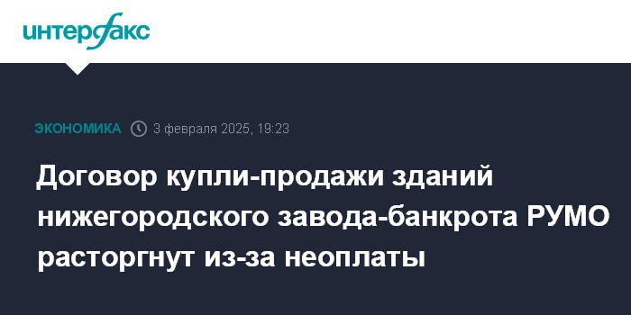 Договор купли-продажи зданий нижегородского завода-банкрота РУМО расторгнут из-за неоплаты