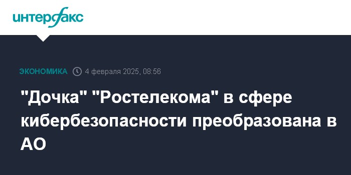 "Дочка" "Ростелекома" в сфере кибербезопасности преобразована в АО