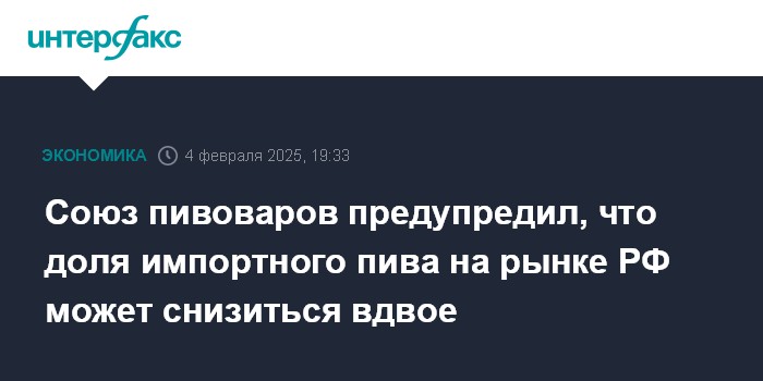 "После объявления о повышении таможенных пошлин на импорт пива импортеры завезли в Россию трех- или шестимесячный запас продукции. Однако это разовый эффект, который уже исчерпан. Очевидно, что поставки из недружественных стран будут сокращаться. В обозримой перспективе у отечественных производителей есть все возможности нарастить свою долю примерно на 3 п.п.. Соответственно, доля импортного пива в сегменте масс-маркет сократится с нынешних 5-6% до 2-3%, а на полках останутся только топовые известные импортные бренды", - заявил Бриман на XX Всероссийской конференции по проблемам алкогольного рынка "Алкоконгресс-2025". Его слова приводятся в пресс-релизе союза.