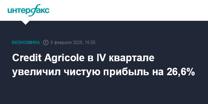 Credit Agricole в IV квартале увеличил чистую прибыль на 26,6%