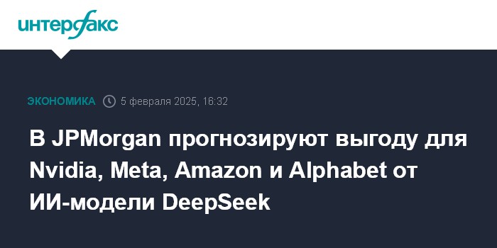 В JPMorgan прогнозируют выгоду для Nvidia, Meta, Amazon и Alphabet от ИИ-модели DeepSeek