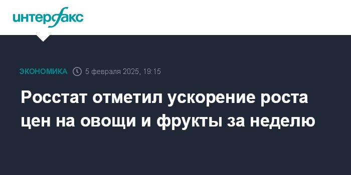 Москва. 5 февраля. INTERFAX.RU - В России с 28 января по 3 февраля фрукты и овощи подорожали на 0,8%, сообщил Росстат. По сравнению с предыдущей неделей (рост на 0,5%) темпы роста ускорились.