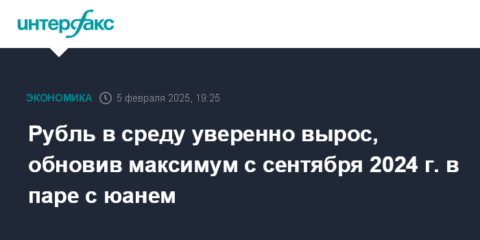 Рубль в среду уверенно вырос, обновив максимум с сентября 2024 г. в паре с юанем