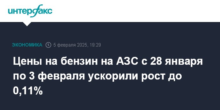 Москва. 5 февраля. INTERFAX.RU - Потребительские цены на бензин в России с 28 января по 3 февраля выросли на 0,11% после повышения на 0,04% с 21 по 27 января 2024 года и на 0,09% с 14 по 20 января, сообщил Росстат.