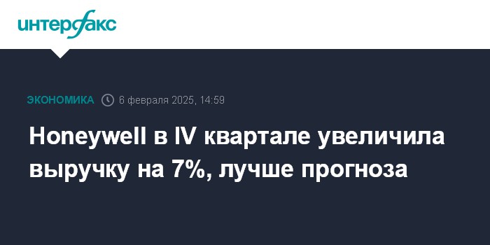 Москва. 6 февраля. INTERFAX.RU - Американская корпорация Honeywell International в четвертом квартале увеличила чистую прибыль и выручку, причем скорректированная прибыль и выручка превысили ожидания рынка.