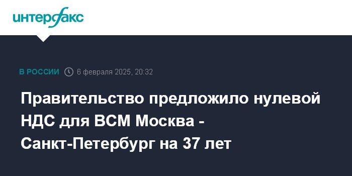 Правительство предложило нулевой НДС для ВСМ Москва - Санкт-Петербург на 37 лет