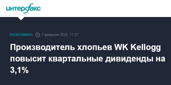 Производитель хлопьев WK Kellogg повысит квартальные дивиденды на 3,1%