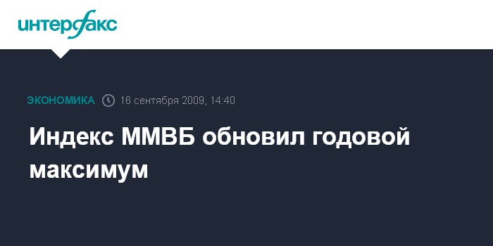 Москва. 16 сентября. INTERFAX.RU - Индекс ММВБ, один из основных российских фондовых индикаторов, в среду обновил годовую вершину, поднявшись к максимальным уровням с начала сентября 2008 года на фоне улучшения внешней фондовой и сырьевой конъюнктуры.